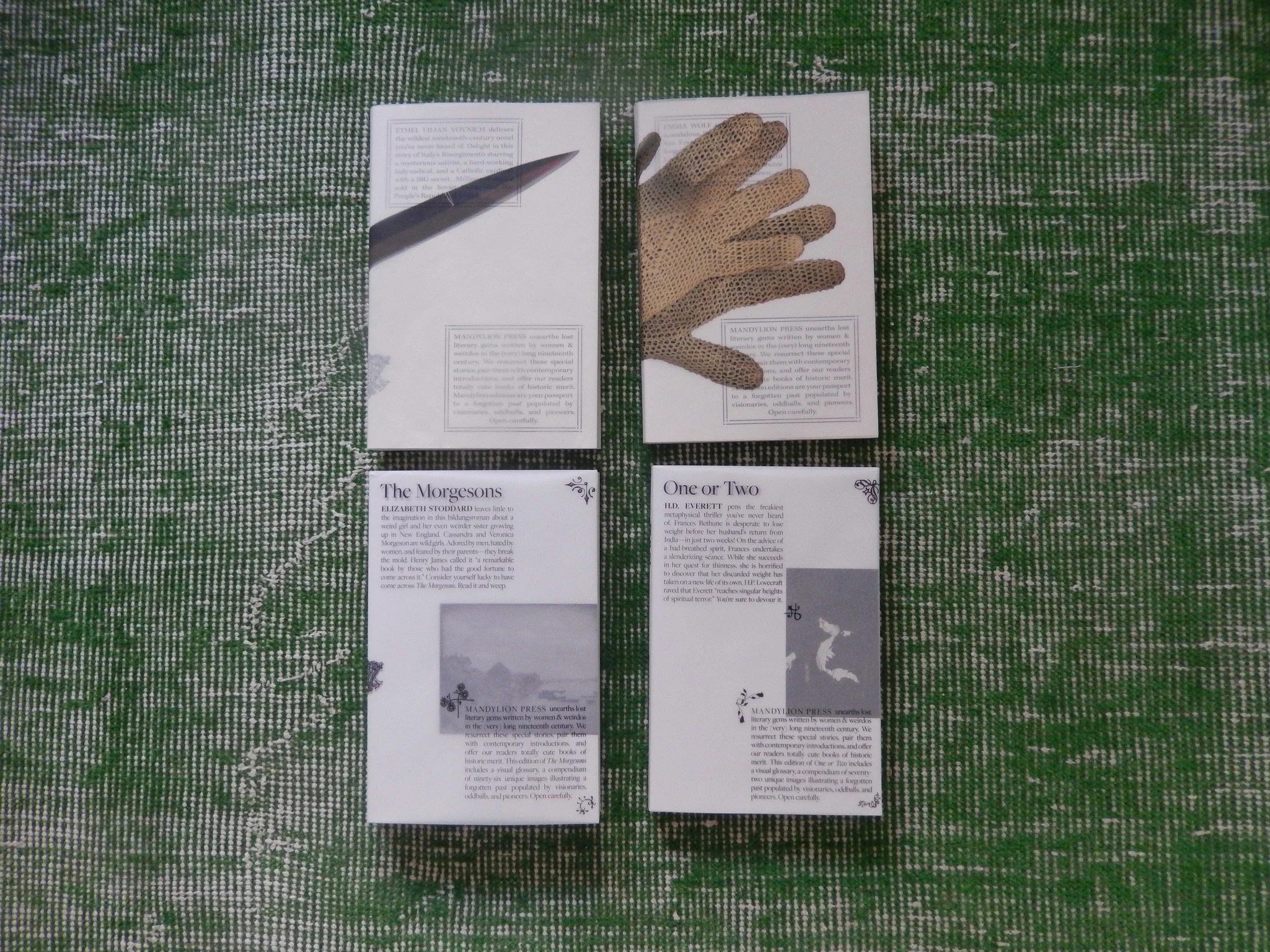 Mandylion® was founded on New Year’s Eve 2022 by Madeline Porsella and Mabel Capability Taylor, who met studying chairs in graduate school. Mandylion unearths lost literary gems written by women and weirdos in the (very) long nineteenth century. Based between New York City, Connecticut, and the fourth dimension, Mandylion pairs special stories with inviting introductions—producing totally cute books of historical merit.